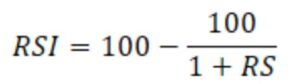 donde ( RS ) es la relación media de cierres alcistas frente a cierres bajistas en un periodo determinado, generalmente 14 días.